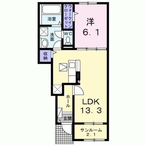 洋室 6.1帖/LDK 13.3帖 - 向き